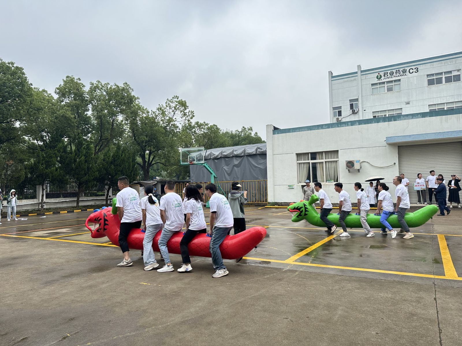 萬“粽”期待 “超過一隊是一隊,劃完就去開派對”,隨著最后啊對對隊這組喊完口號,一場激烈的旱地龍舟比賽正式拉開序幕。率先出場的四條龍舟的隊員們緊握龍舟,步伐整齊劃一,如同在水波上劃行,展現(xiàn)出了驚人的速度和協(xié)調(diào)性,邁著相同步伐奮勇前進。