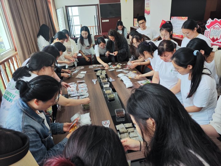 隨著一雙雙巧手上下翻舞,一個個立體飽滿、精致美觀的香囊呈現(xiàn)在大家手上,細密針腳蘊含著心意,縷縷幽香寄托著祝福。